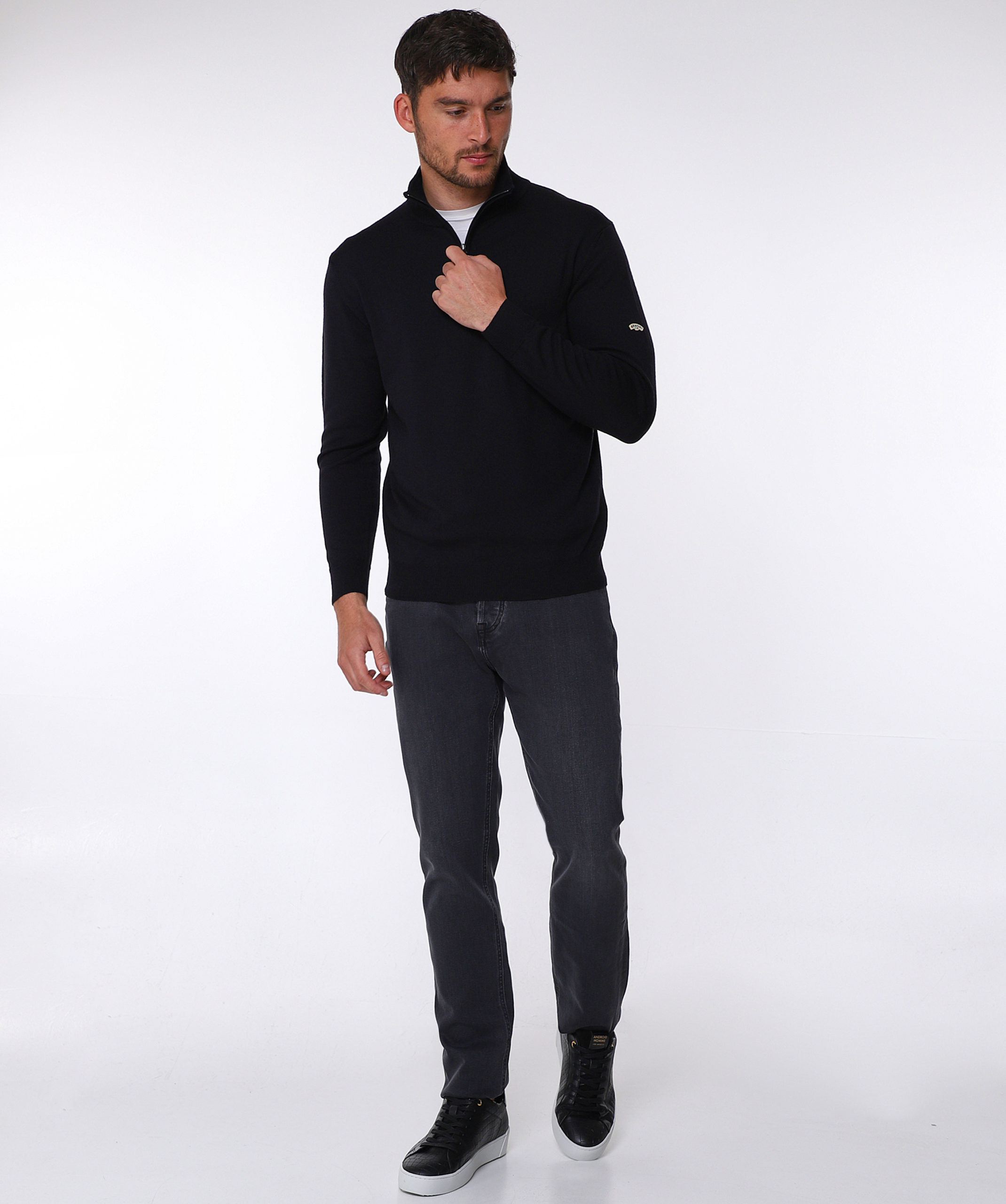 The ‘Albie’ is a 100% Merino wool half zip jumper. Produced in a fine gauge resulting in a super soft luxury and lightweight feel.